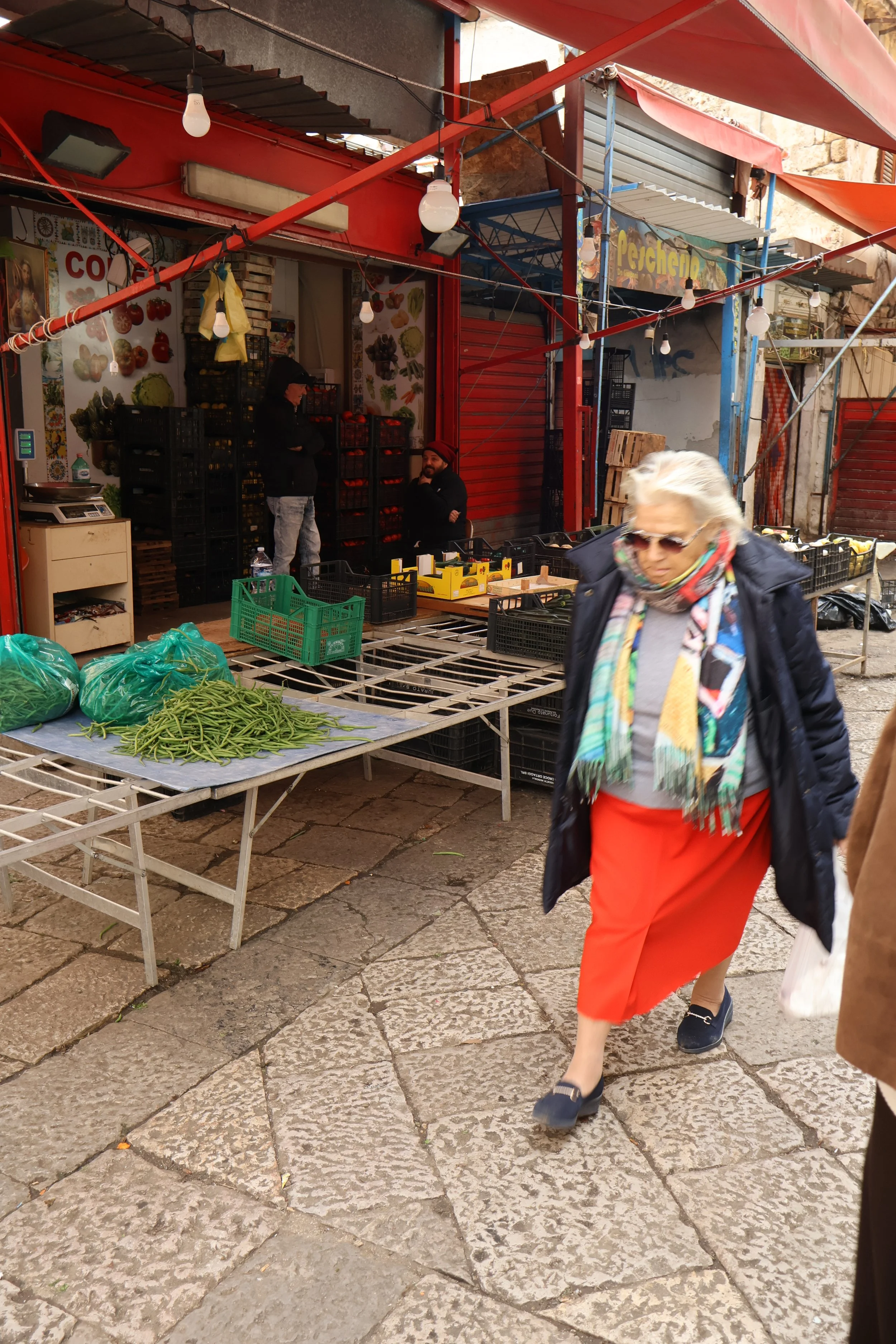 It can feel like controlled disorder. Teenagers on mopeds inch their way down corridors of people. A car turns down the wrong lane and has to roll over a mountain of discarded cauliflower leaves to escape. Voices carry from every direction, thick with Sicilian dialect that hints at the island’s history with North Africa and the Middle East.