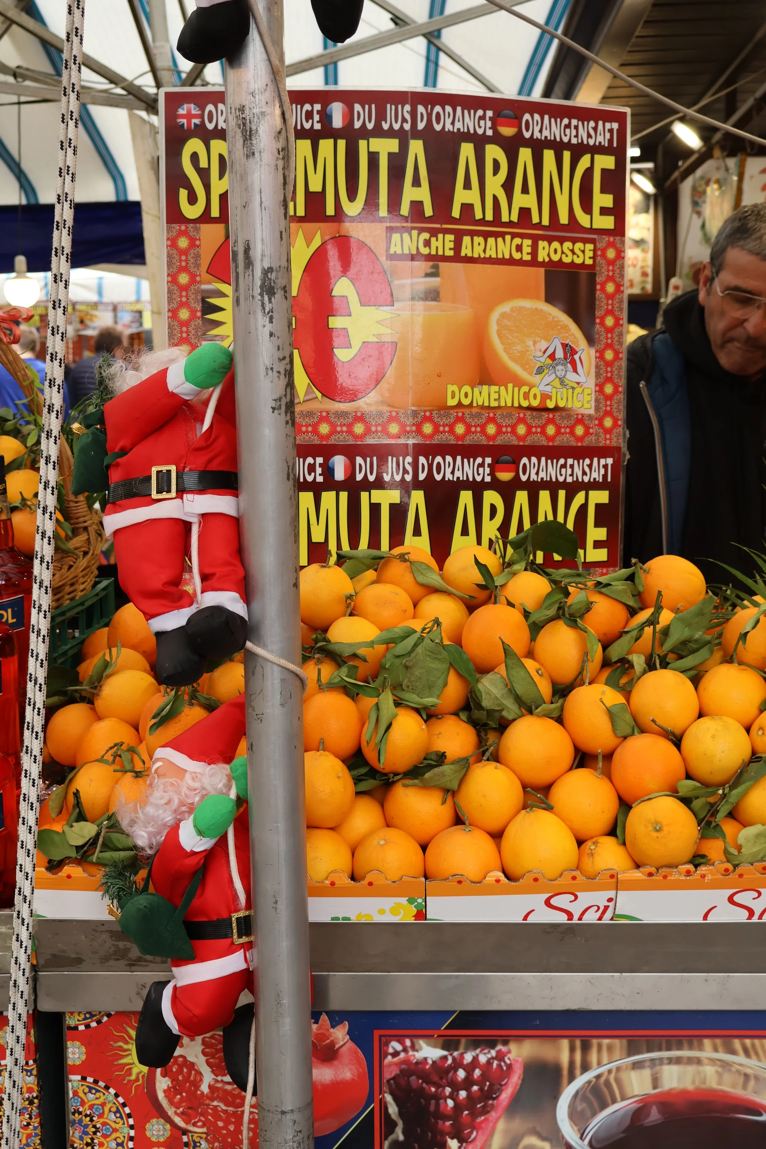 The produce has shifted too. Where figs, melons and aubergines once dominated, the stalls are now piled high with fennel, cauliflower, and the bright citrus that defines Sicilian cooking. Oranges everywhere.